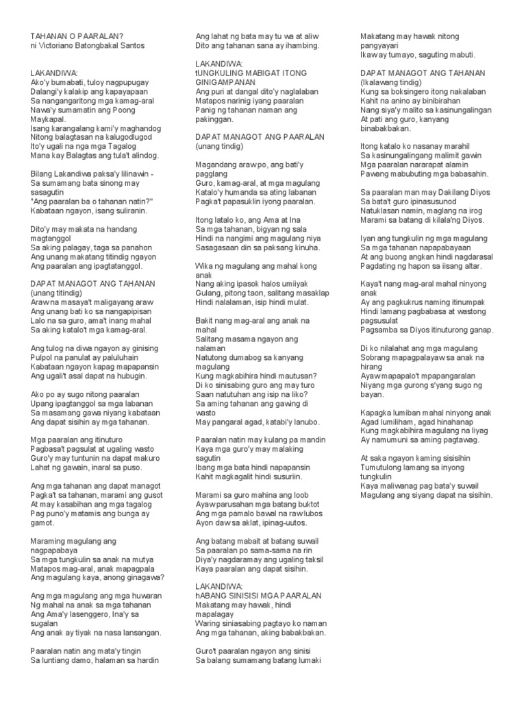 Mag aral ng mabuti. Nov 01 2019 Paaralan ikalawang tahanan 1 See answer jimbryan1534 jimbryan1534 oo at ang guro ang pangalawang pamilya. Issues and Challenges encountered by the school during the attempt of putting up Gulayan sa Paaralan despite the insufficient space to be utilized c.