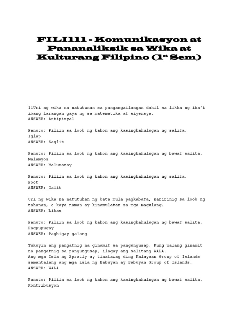 Ito Ay Ang Unang Wikang Kinagisnan Sa Tahanan Pamayanan At Lalawigan Ayalek Course Hero