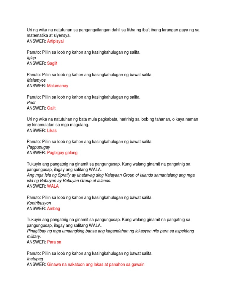Feb 03 2008 Kahit isang milyon lamang ang gumagamit ng Filipino sa labas ng Pilipinas masasabi nating lingguwaheng pandaigdig ito sapakat ginagamit sa labas ng bansa paliwanag ni Hornedo. Ito ay tumutukoy sa mga salita kataga o mga pararila na ginagamit ng bawat miyembro ng pamilya sa loob ng bahay. Labanan ang tendensiyang mang-insulto o magtaas ng boses gaanuman kasama ang loob mo.